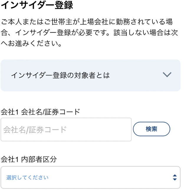 インサイダー取引を防ぐために勤務先の部署や役職を登録。