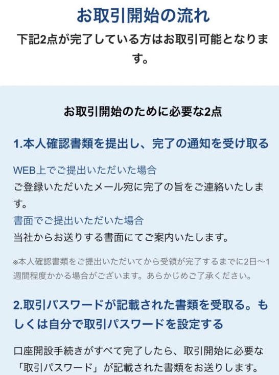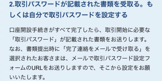 本人確認書類の提出や取引パスワードの設定は、すでにWeb上から完了しています。