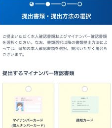 マイナンバーカードをその場でスマホで撮影してアップロードする方法なら、本人確認書類は1種類だけで済みます。